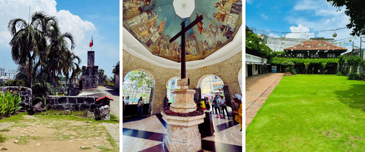 Nuestro último día de viaje en Cebú descubrimos los principales monumentos históricos de la ciudad, como la Cruz de Magallanes, la Basílica del Santo Niño de Cebú y el fuerte de San Pedro, situado en la plaza de la independencia. También hicimos una parada en el Mercado de Carbón, donde pudimos comprar artesanía local y algunos souvenirs.